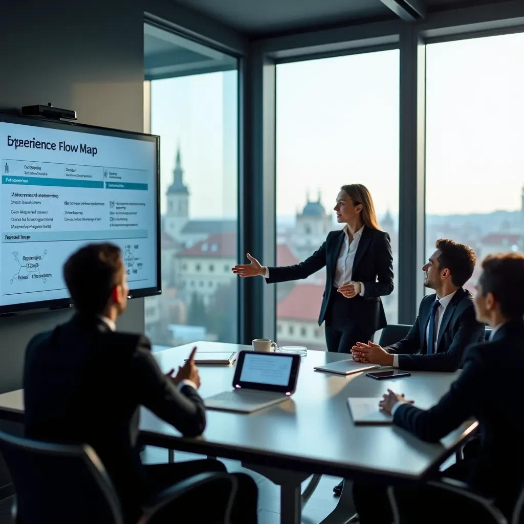 Vytvoříme vizualizaci "Experience Flow Map", která identifikuje klíčové body odchodu zákazníků. Tento krok trvá 1 týden a zahrnuje spolupráci s klientem na přizpůsobení mapy jeho potřebám.